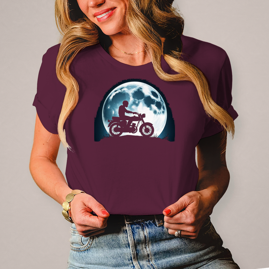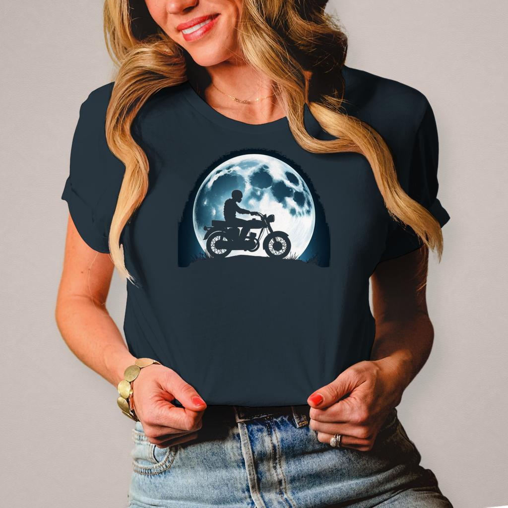 Die kraftvolle Silhouette einer Simson vor dem leuchtenden Mond steht für Unabhängigkeit, Abenteuer und echte Leidenschaft fürs Fahren. Minimalistisch, stark und emotional – perfekt für alle, die lieber fahren als reden.